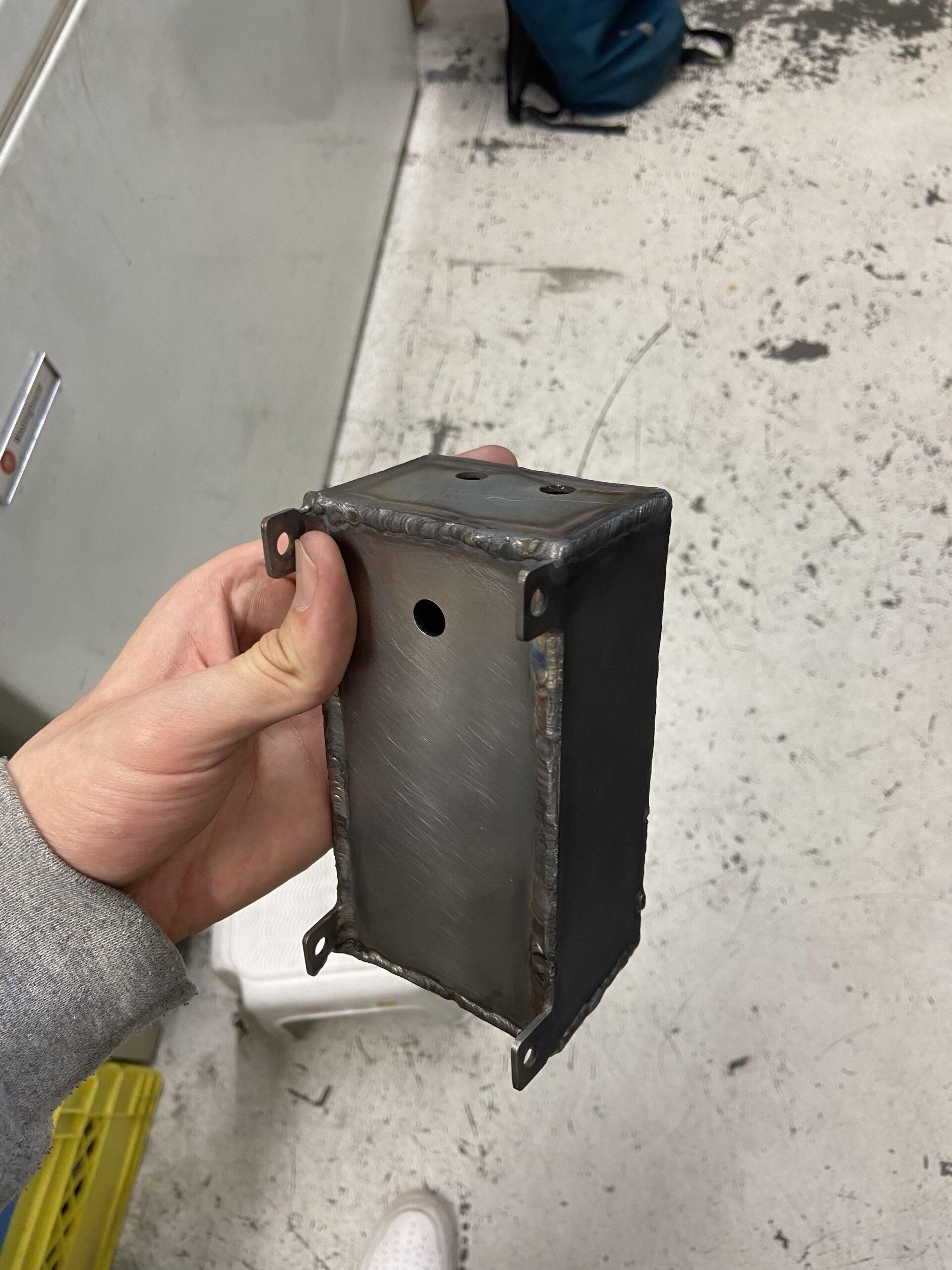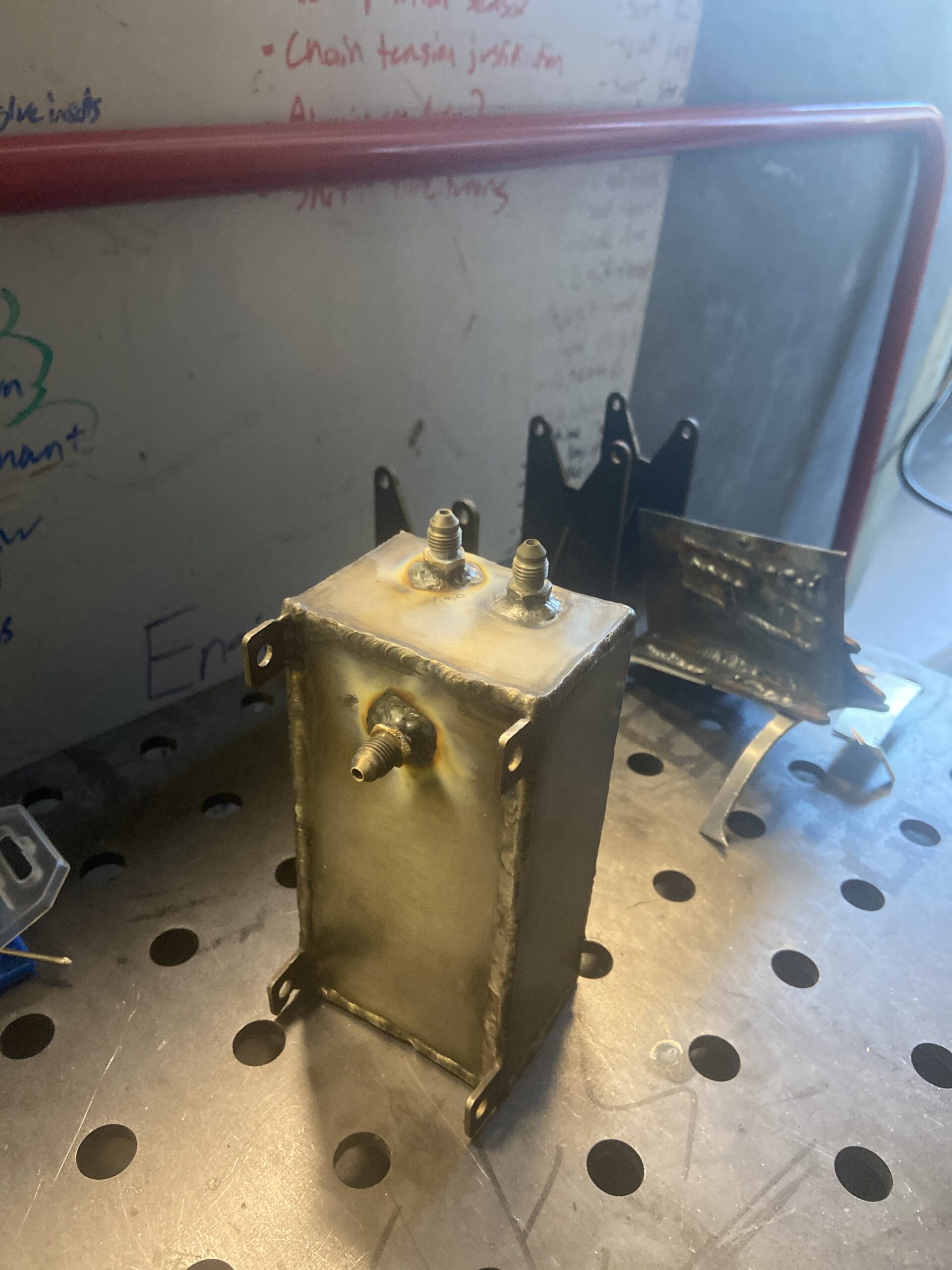 For my first project, I designed and fabricated a custom catch can to serve as a vent and reservoir for excess oil coming from our gearboxes. This was also my introduction to TIG welding, and the project gave me hands-on experience with both metal fabrication and design for manufacturability.